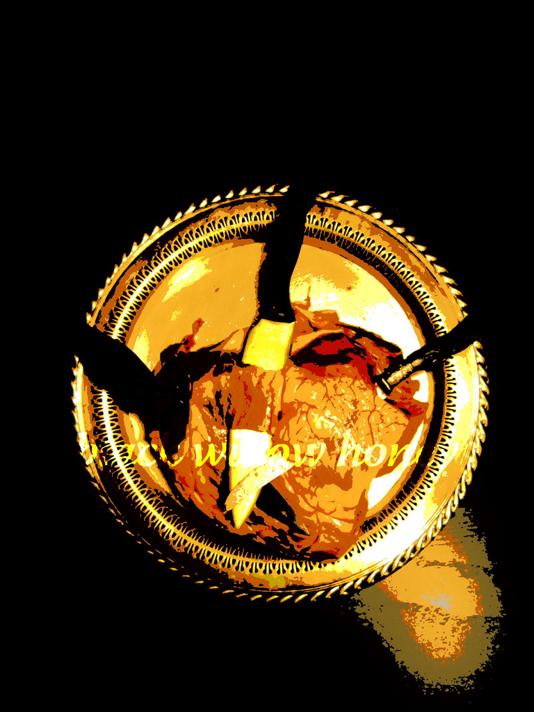 For those not familiar with the tarot, the three of swords is typically a card of pain and heartbreak, depicted in the Rider-Waite as a heart pierced by three blades. Stephanie being occasionally of a literal bent, we accordingly acquired a heart and blades.